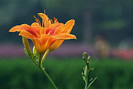 我國也有一種母親之花,它就是萱草花。萱草是百合科多年生草本植物,根莖肉質(zhì),葉狹長,細長的枝頂端開出桔紅或桔黃色的花,十分艷麗,它不僅供人觀賞,花蕾叫金針,也可作蔬菜供人食用,在我國南北方廣為栽植。